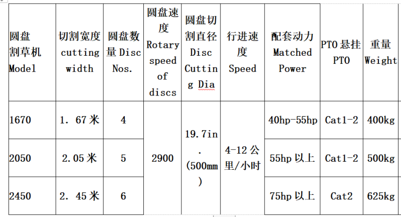 后悬挂圆盘割草机由传动系统、机架、切割系统、液压提升系统组成;传动系统有轴输入和柴油机皮带输入两种;切割系统包括刀盘和刀片,刀片用固定螺栓锁在刀盘上,但刀片是活动的,只有刀片随刀盘高速运转靠惯性作用切割牧草,遇到硬物时,刀片会自动弹回,因此刀片不会被打折。后悬挂圆盘割草机液压提升系统是设计一个单缸液压或者整体借用拖拉机的液压来提升机体,从而控制牧草的收割高度。