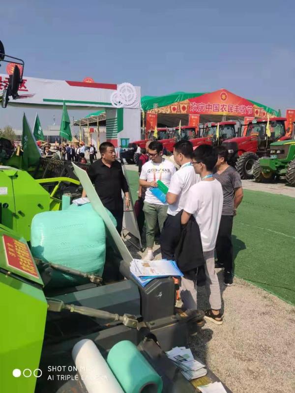 曲阜鑫联重工机械制造有限公司参加陕西大荔县农民丰收节,农机展会活动,现场参观的客户朋友人来人往,这是销售经理为客户介绍设备性能特点的场面。